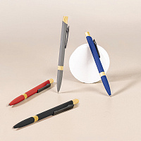 Ручка шариковая FRESCO серый/темно-серый, металл, пластик, ,бамбук, софт-покрытие